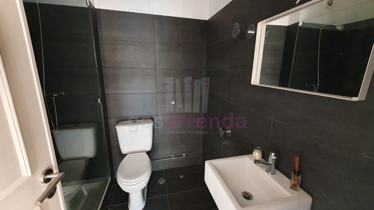 Tem um lugar de garagem com portão automático e ainda uma arrecadação.
